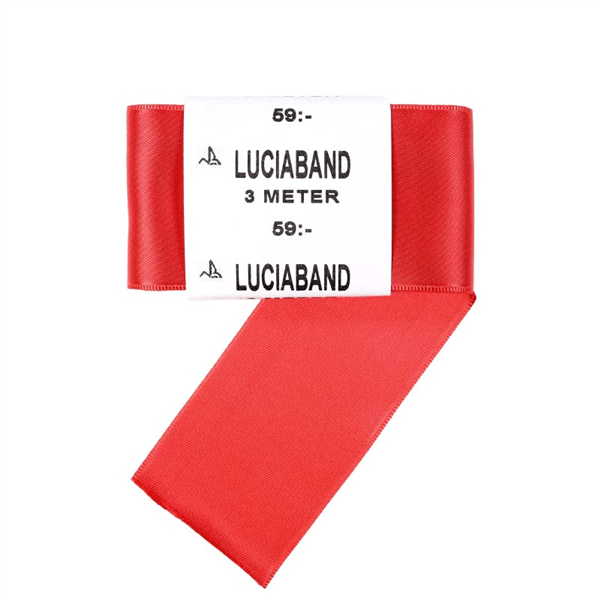 Brett rött Luciaband med en bredd 50mm och en längd på 3m. Ett riktigt fint och klassiskt Luciaband att knyta runt lucias midja eller varför inte tärnans? Kan även användas till presentinslagning och annat pyssel.