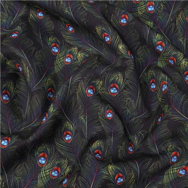 En mönstrad Modepolyester, även känd som Bi-stretch, med tungt och följsamt fall. Det har en vacker lyster och den glatta ytan gör tyget lätt att arbeta med, vilket uppskattas både av nybörjare och erfarna sömnadsentusiaster. Bi-stretch menas att tyget är ett vävt tyg med mekanisk stretch åt båda hållen. Däremot innehåller inte tyget någon stretchtråd så den upplevs stumt och fast.