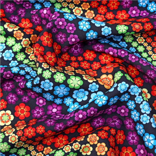 En mönstrad Modepolyester, även känd som Bi-stretch, med tungt och följsamt fall. Det har en vacker lyster och den glatta ytan gör tyget lätt att arbeta med, vilket uppskattas både av nybörjare och erfarna sömnadsentusiaster. Bi-stretch menas att tyget är ett vävt tyg med mekanisk stretch åt båda hållen. Däremot innehåller inte tyget någon stretchtråd så den upplevs stumt och fast.