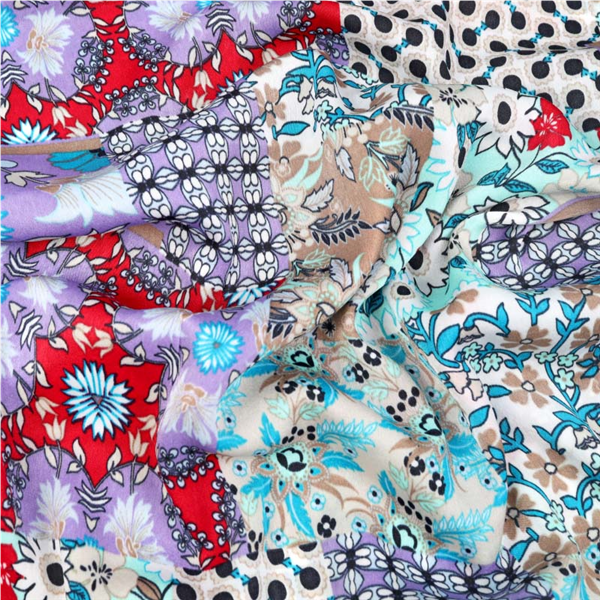 Ett tunt Modetyg med ett tryckt vackert mönster. Klädtyget upplevs otroligt böljande, tunt och följsamt. Tyget har en otroligt len yta med lätt skimmer och påminner om en kombination av satin och sammet. Passar perfekt till sömnad av blusar, klänningar, skjortor, kjolar, byxor med mera.