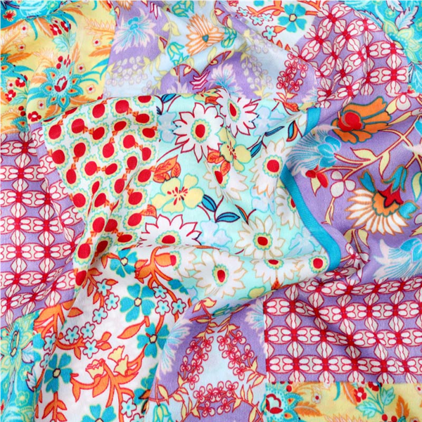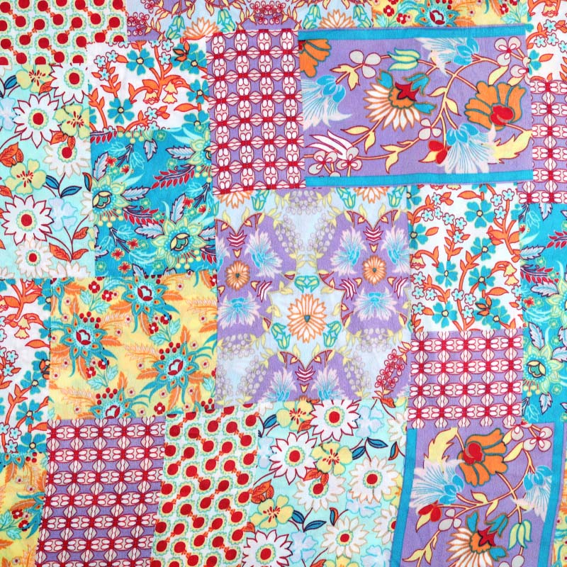 Ett tunt Modetyg med ett tryckt vackert mönster. Klädtyget upplevs otroligt böljande, tunt och följsamt. Tyget har en otroligt len yta med lätt skimmer och påminner om en kombination av satin och sammet. Passar perfekt till sömnad av blusar, klänningar, skjortor, kjolar, byxor med mera.