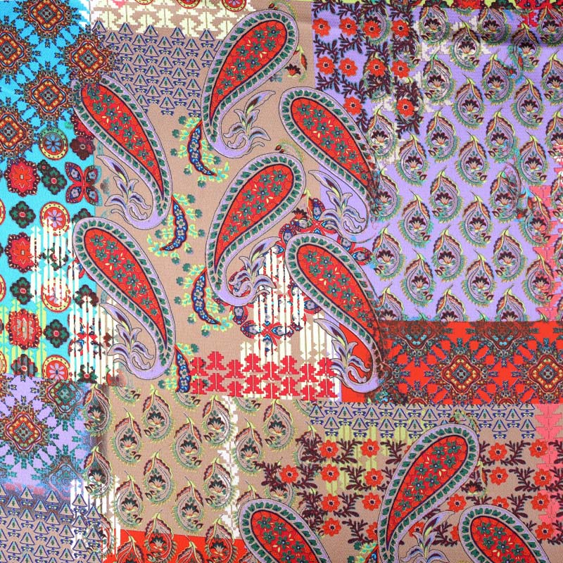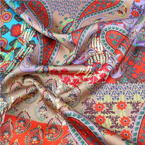 Ett tunt Modetyg med ett tryckt vackert mönster. Klädtyget upplevs otroligt böljande, tunt och följsamt. Tyget har en lätt kreppad yta och ett diskret skimmer. Passar perfekt till sömnad av blusar, klänningar, skjortor, kjolar, byxor med mera.