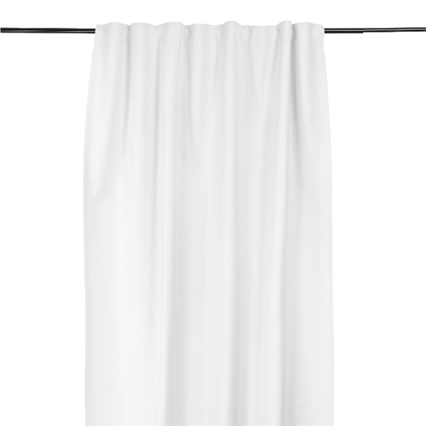 Gardinen är dubbelsidig, vilket innebär att den har samma färg och struktur på båda sidor.