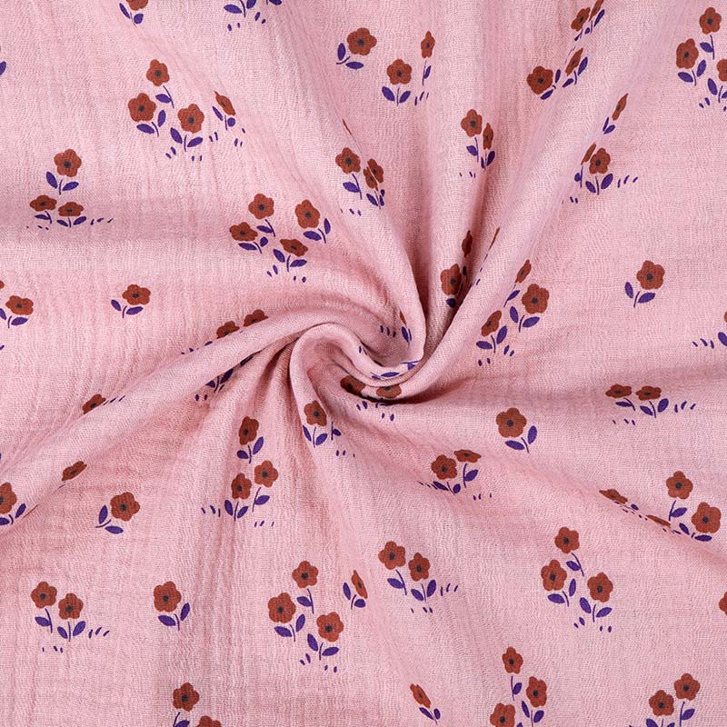 Otroligt mjukt och lätt tyg i 100% Bomull med fint, dekorativt tryck. Dubbelvävt med en tydlig skrynklad yta och känsla som ligger väldigt skönt mot huden. Tyget kallas även Double Gauze. Passar ex till sängkläder, klädsömnad, babyfiltar, babynest mm.
