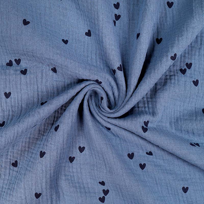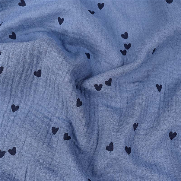 Otroligt mjukt och lätt tyg i 100% Bomull med fint, dekorativt tryck. Dubbelvävt med en tydlig skrynklad yta och känsla som ligger väldigt skönt mot huden. Tyget kallas även Double Gauze. Passar ex till sängkläder, klädsömnad, babyfiltar, babynest mm.