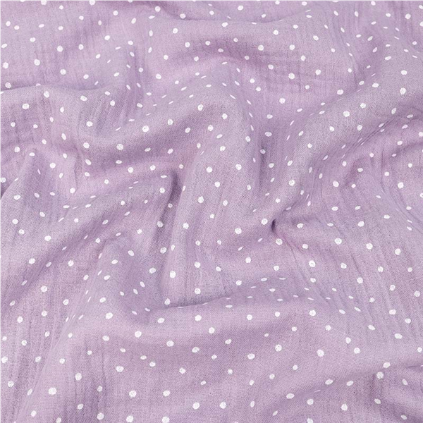 Otroligt mjukt och lätt tyg i 100% Bomull med fint, dekorativt tryck. Dubbelvävt med en tydlig skrynklad yta och känsla som ligger väldigt skönt mot huden. Tyget kallas även Double Gauze. Passar ex till sängkläder, klädsömnad, babyfiltar, babynest mm.