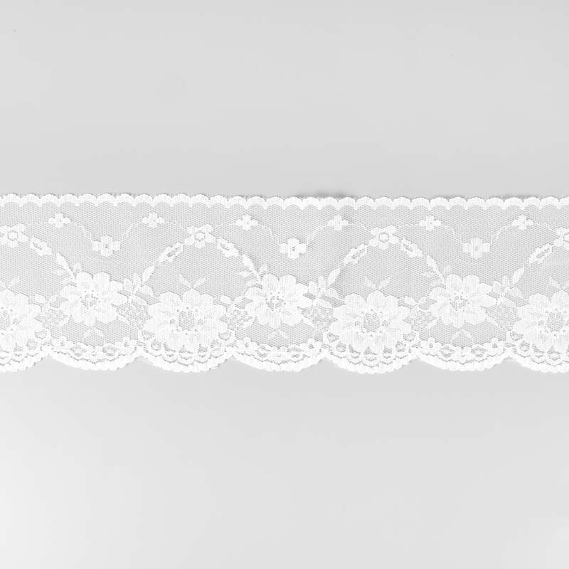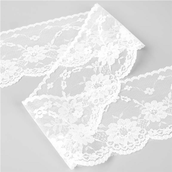 Dekorativ nylonspets med blommor! Spetsen är mjuk och stretchig. Snygg detalj som livar upp ett gammalt plagg eller använd till dina nya syprojekt som utsmyckning till inredning eller kläder.