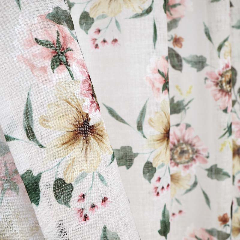 Piffa till ditt hem med Gardin Olivia, en mönstrad Gardin i skirt tyg. Den fint vävda strukturen ger ett djup och bidrar till en rustik känsla, passar i alla rum – från vardagsrum och matsal till sovrum och kontor.