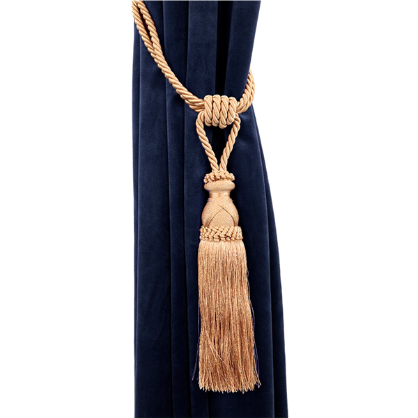 Inred med lyxiga detaljer! Omtag med stor silkestofs och avsmalnande knopp. Tofsen är ca 27cm och hela omtaget är ca 70cm!