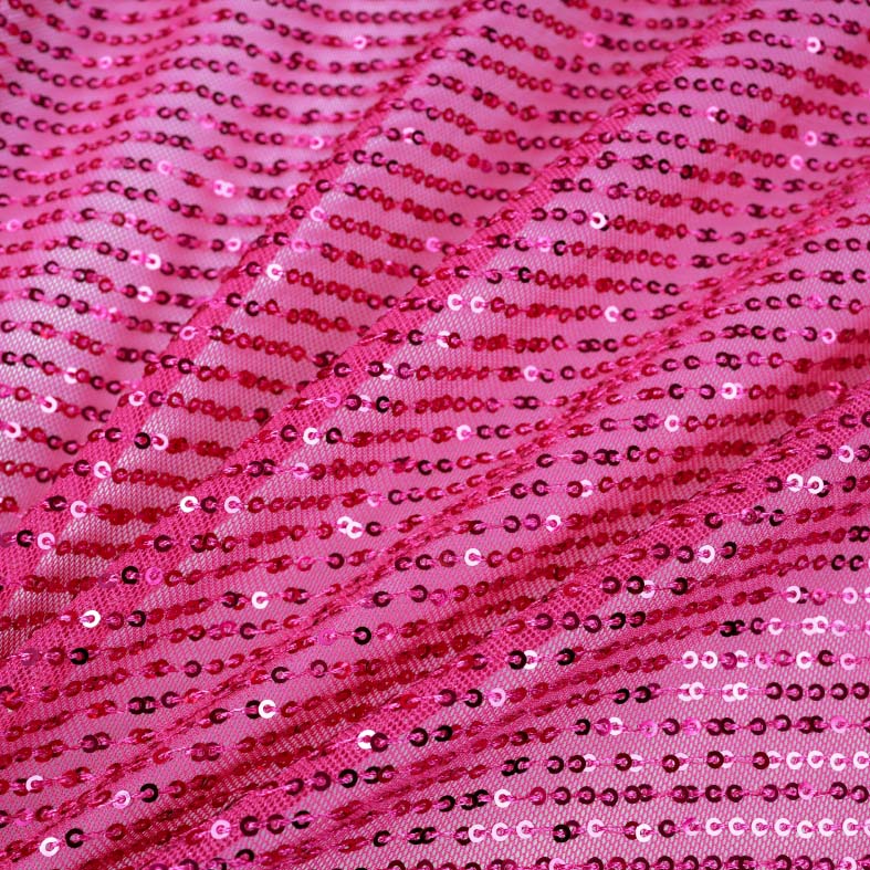 Ett tunt Meshtyg med små fastsydda paljetter som ger tyget ett festligt och skimrande intryck! Tyget har en lätt och följsam känsla med generös stretch. Tyget är transparent och passar därför särskilt bra i kombination med andra tyger och i flera lager. Passar utmärkt till att sy festliga plagg såsom skjortor, kjolar, blusar, klänningar, kavajer, byxor och mycket mer!