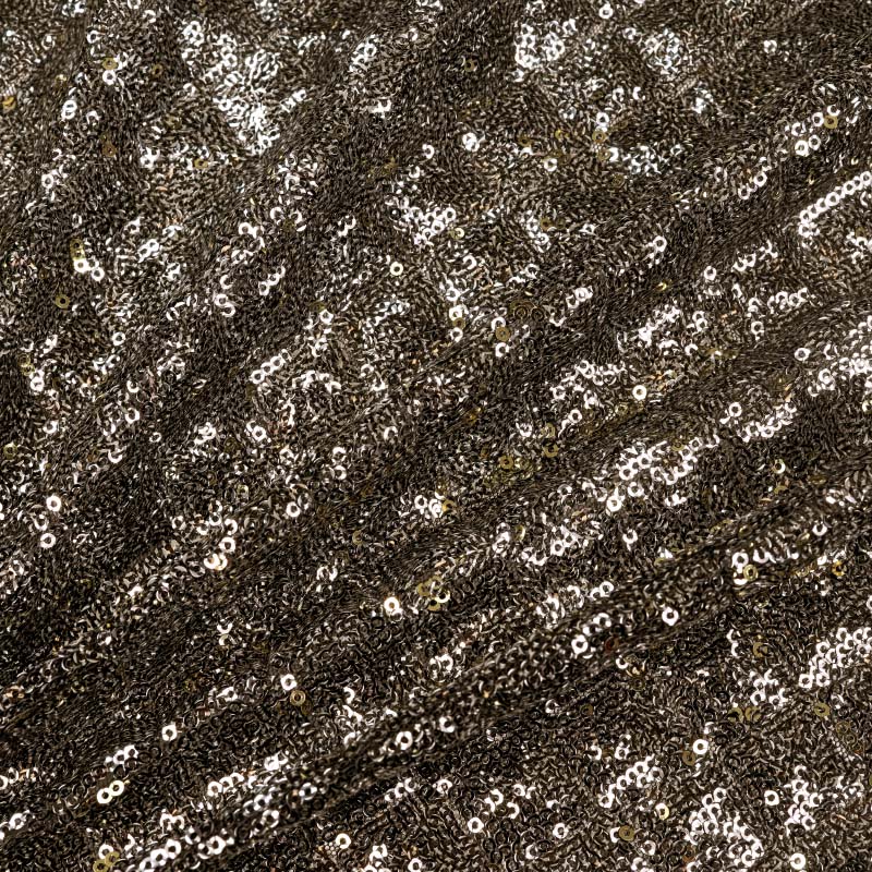 Ett tunt Meshtyg med små fastsydda paljetter som ger tyget ett festligt och skimrande intryck! Tyget har en lätt och följsam känsla med generös stretch. Tyget är transparent och passar därför särskilt bra i kombination med andra tyger och i flera lager. Passar utmärkt till att sy festliga plagg såsom skjortor, kjolar, blusar, klänningar, kavajer, byxor och mycket mer!