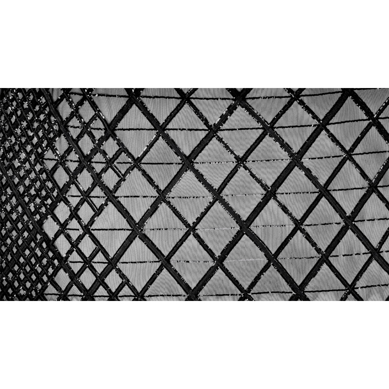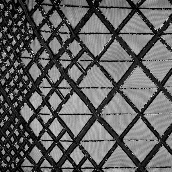 Paljetterna är fastsydda till ett rutigt mönster i olika storlekar, se bild 4 för tygets fulla bredd!