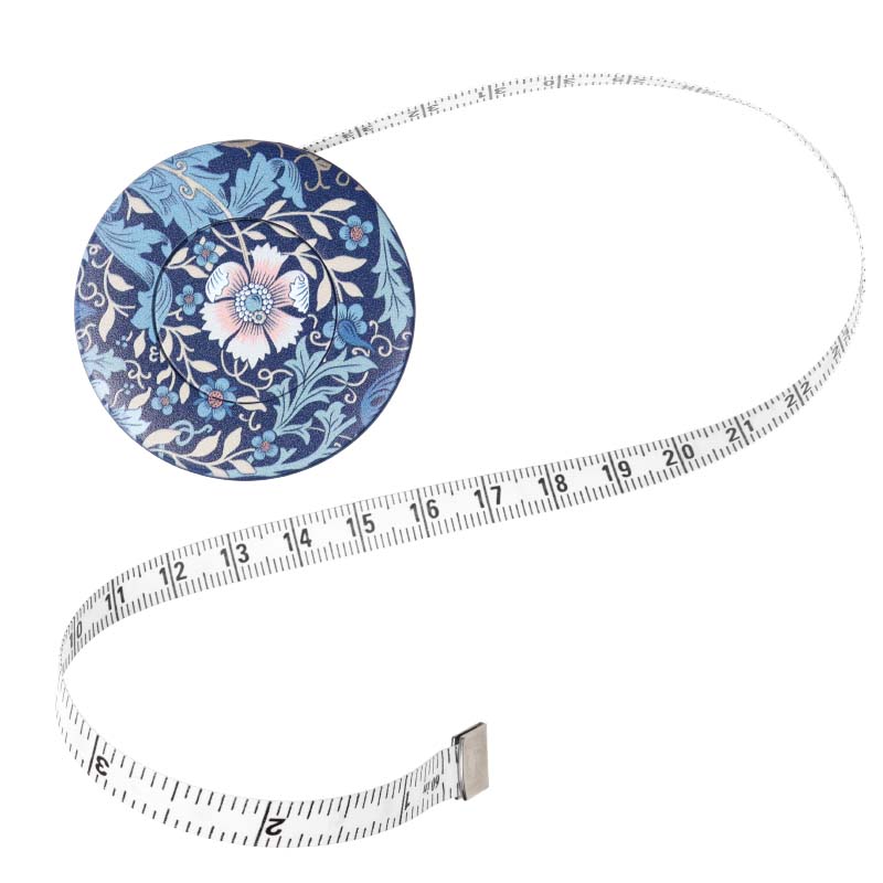 Praktiskt Rullmåttband i runt format med vackert motiv. Måttbandet är 150 cm långt, med cm-markeringar på ena sidan och tum på den andra. Drag ut måttbandet och det stannar. Tryck på knappen och det åker automatiskt in.