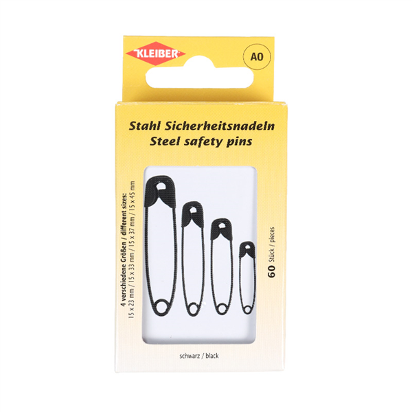 En Förpackning innehåller totalt 60st Säkerhetsnålar i storlekarna 15x23mm, 15x33mm, 15x37mm och 15x45mm
