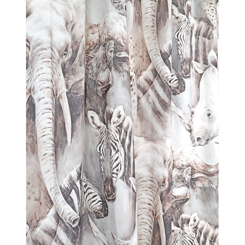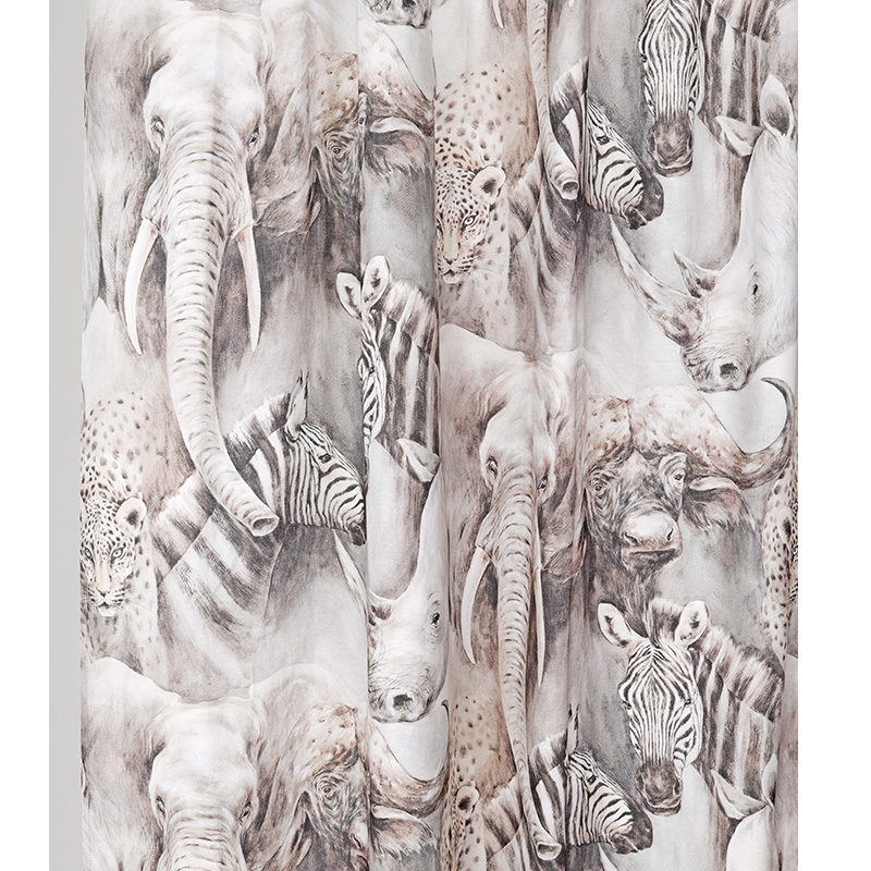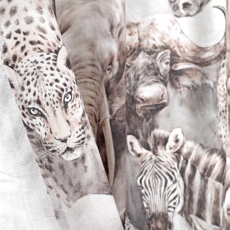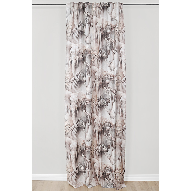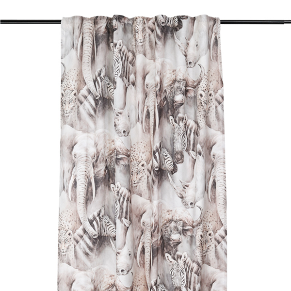Gardin Savann (2-pack) ger en häftig och stämningsfull detalj till i rummet! En Gardin i 100% bomull med ett mjukt, lätt fall mot golvet och en vacker linnelook kvalité samt overlock nertill. Gardinen har ett coolt stormönstrat djurtryck.