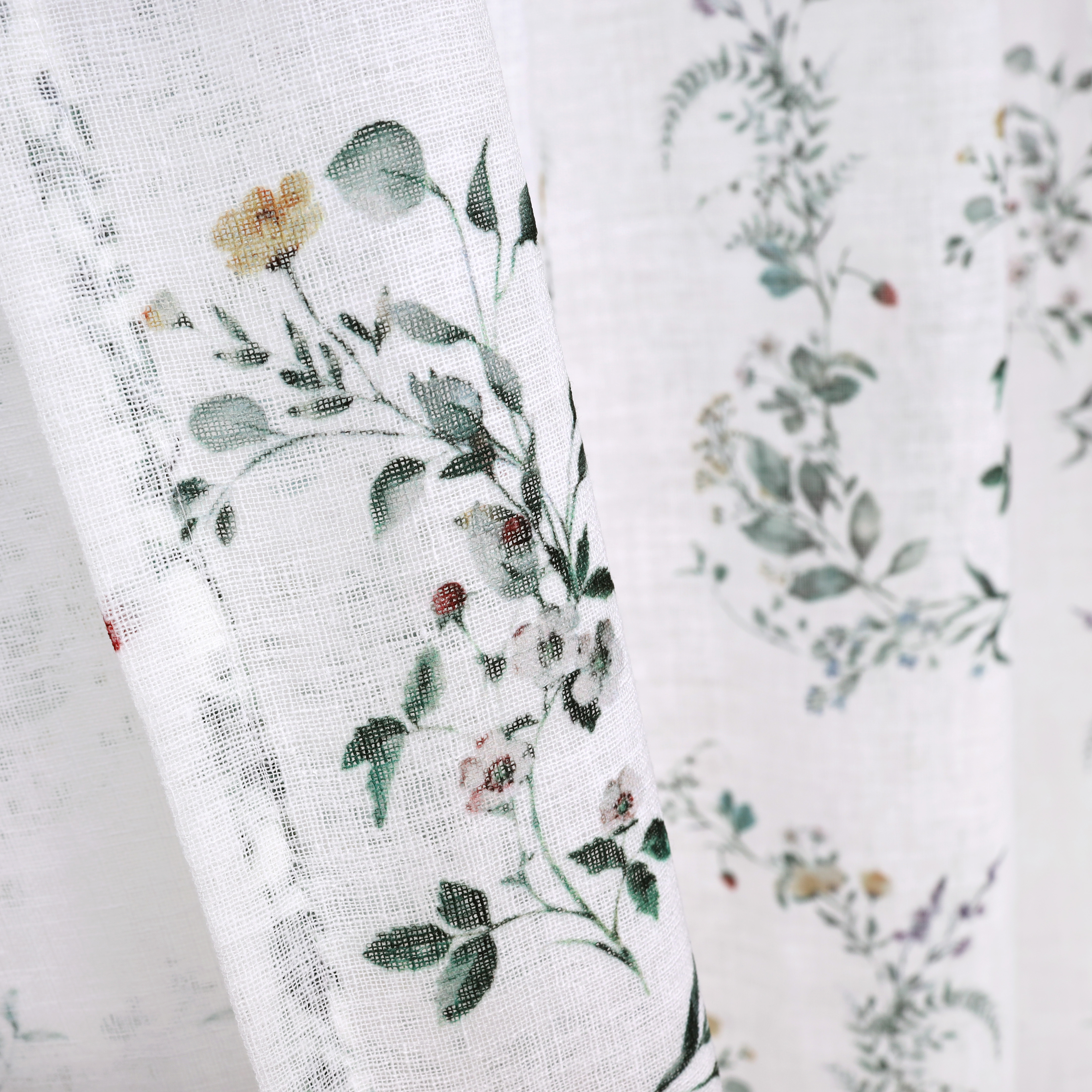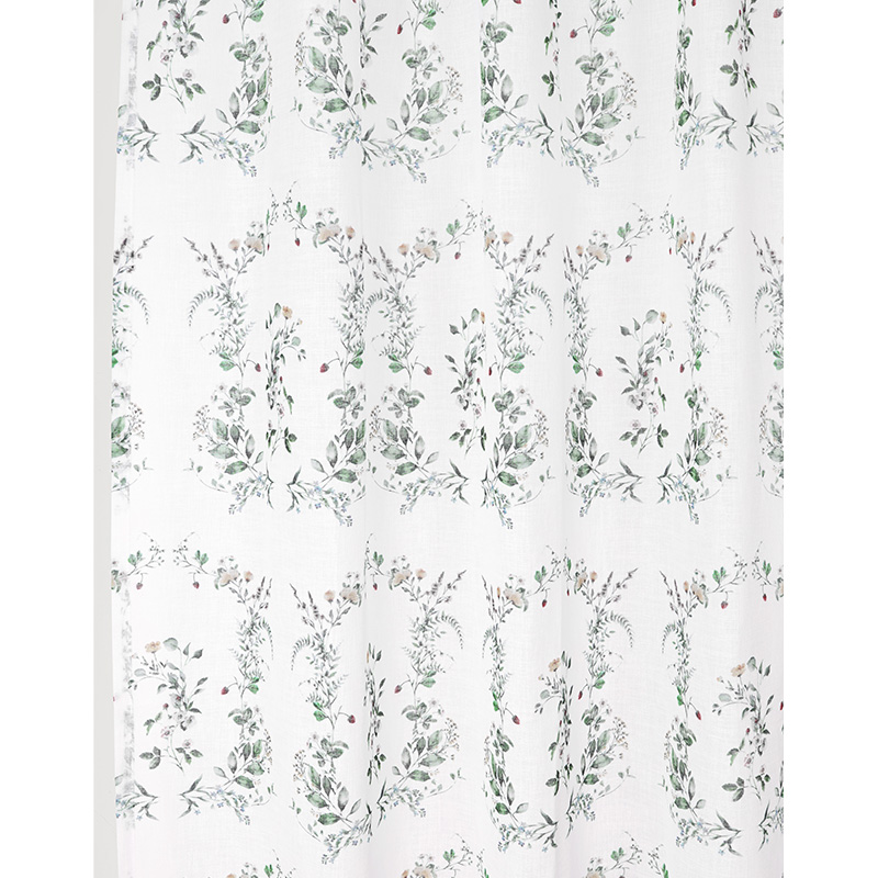 Piffa till ditt hem med Gardin Smultron, en mönstrad Gardin i skirt tyg. Den fint vävda strukturen ger ett djup och bidrar till en rustik känsla, passar i alla rum – från vardagsrum och matsal till sovrum och kontor.