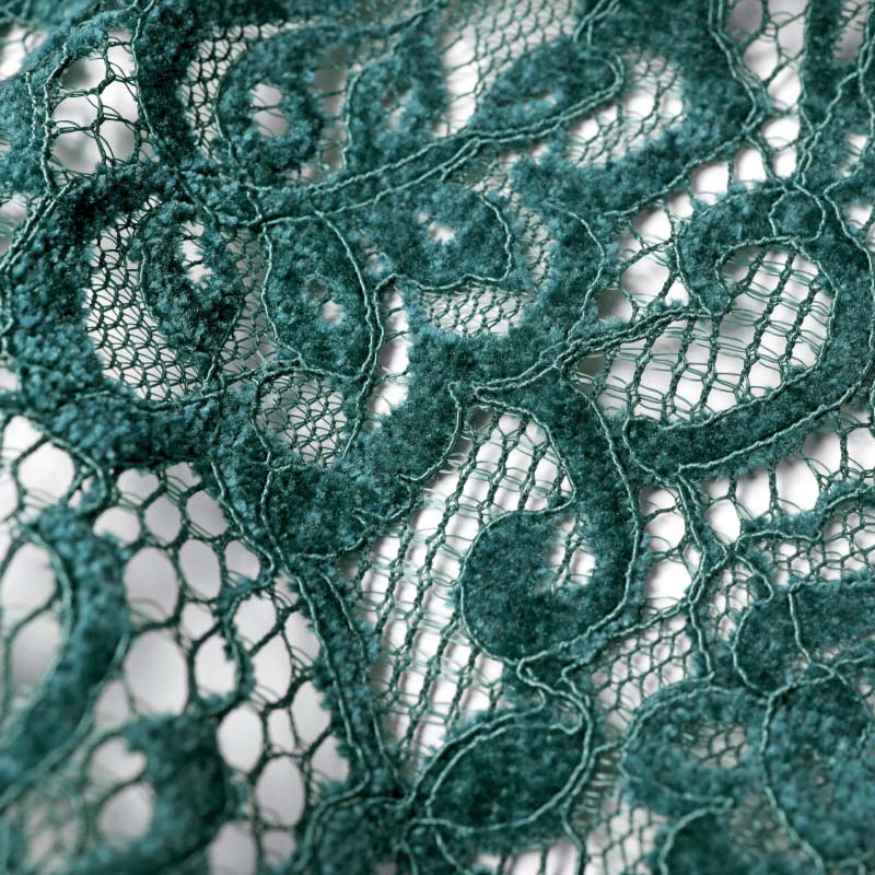 Ett blommigt Spetstyg med len chenilleyta. Den mjuka ytan ger Spetsen lite extra tyngd och har därav ett mjuk och naturligt fall. Spetsen har ett detaljerat blommönster och gör sig utmärkt till sömnad av både kläder och inredningsdetaljer. Tyget upplevs följsamt och mjukt, med lite stretch. Sy blusar, klänningar, kjolar, sjalar med mera!