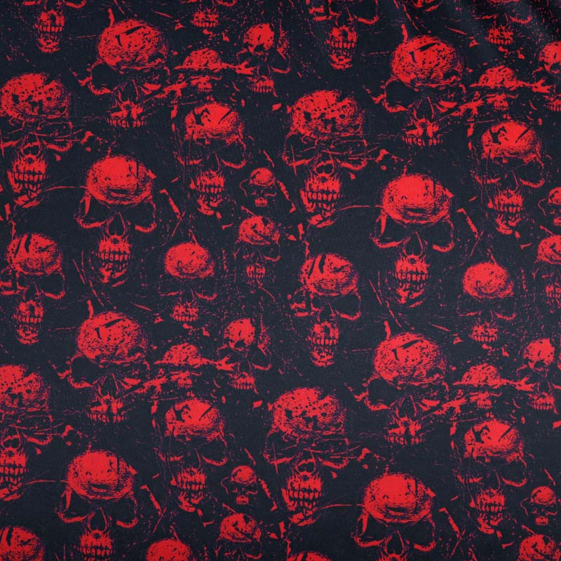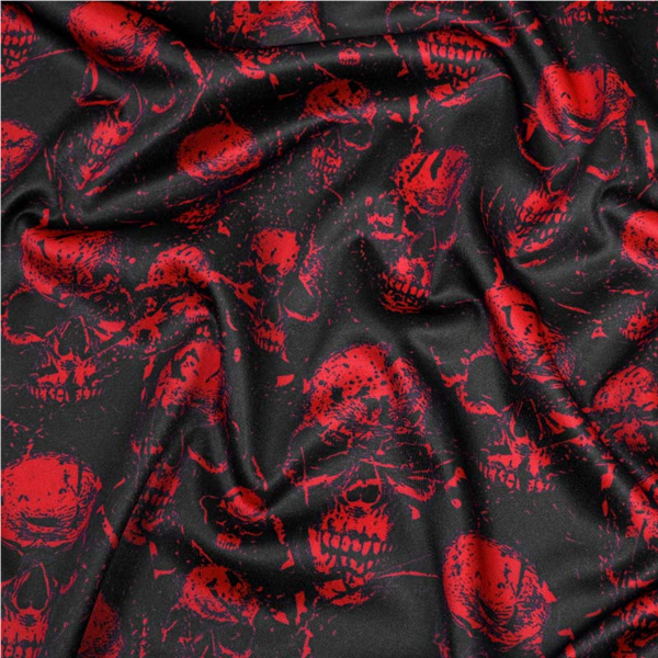 Mönstrat Modetyg med generös stretch och ett tryckt och skimrande halloweeninspirerat mönster. Tyget har en blank yta och upplevs väldigt följsam och behaglig mot huden. Passar utmärkt till klädsömnad som tröjor, klänningar, kjolar, byxor, skjortor, utklädnader och mycket mer!