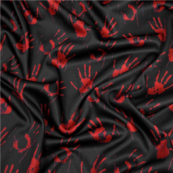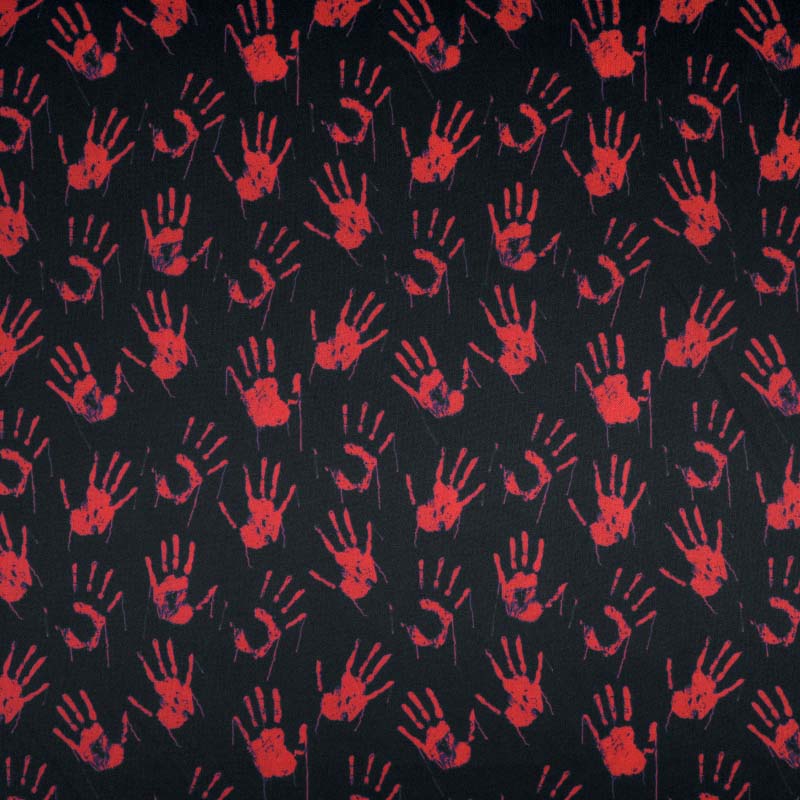 Mönstrat Modetyg med generös stretch och ett tryckt och skimrande halloweeninspirerat mönster. Tyget har en blank yta och upplevs väldigt följsam och behaglig mot huden. Passar utmärkt till klädsömnad som tröjor, klänningar, kjolar, byxor, skjortor, utklädnader och mycket mer!