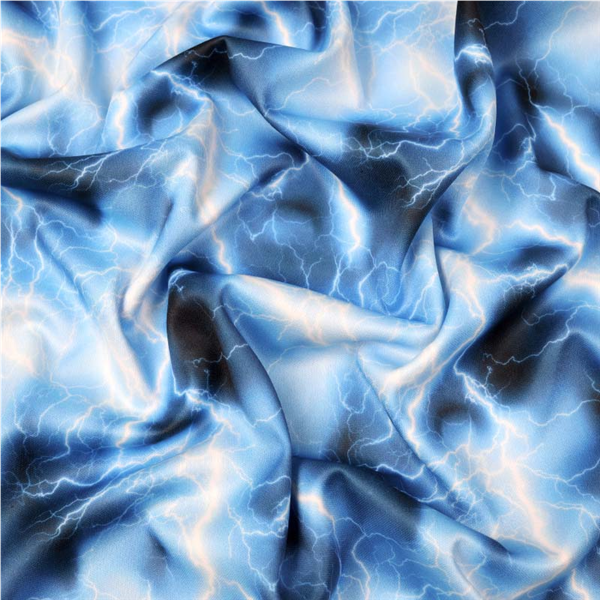 Ett mönstrat Modetyg med ett naturligt och följsamt fall. Det har en vacker lyster och en glatt yta som påminner om ett sporttyg. Tyget har dessutom lite stretch som gör det idealt att använda till sköna klänningar, skjortor, byxor, träningskläder, linnen och mycket mer!