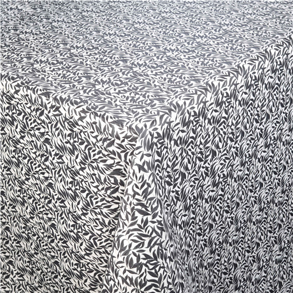 Avtorkbar Dukväv med elegant bladmönster. Det ÖKO-TEX certifierade Duktyget tillverkas i Europa och är belagt med akryl så det är lätt att torka av och behöver inte fållas. Passar perfekt till dukar, löpare, sittdynor, förkläden, necessärer m.m.