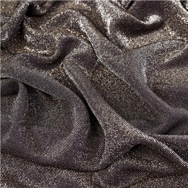 Stretchigt Glittertyg med vackert skimmer i 100% Polyester. Tyget upplevs följsamt och har en len och slät insida som känns behaglig mot huden (se bild 2). Passar utmärkt till sömnad av blusar, klänningar, kjolar, byxor, toppar, kavajer och mycket mer!