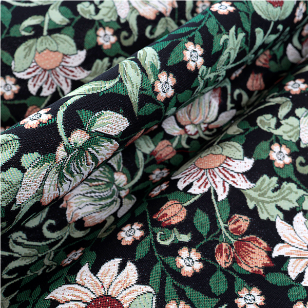 Detta Gobelängtyg kombinerar estetiskt uttryck med funktionalitet, vilket gör det till ett populärt val för både hemmaprojekt och professionell inredning. Den kraftiga strukturen ger tyget ett vackert fall och en exklusiv känsla – samtidigt som det håller formen över tid.