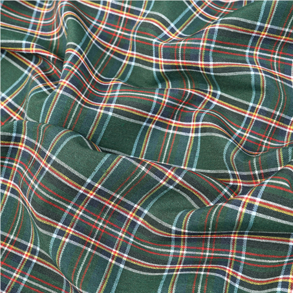 Inredningstyget Adam i vävt skotsrutig vävnad är från södra Spanien och av återvunnet material (45% Bomull som är återvunnen och 55% återvunnen polyester) och är ÖKO-TEX certifierat.