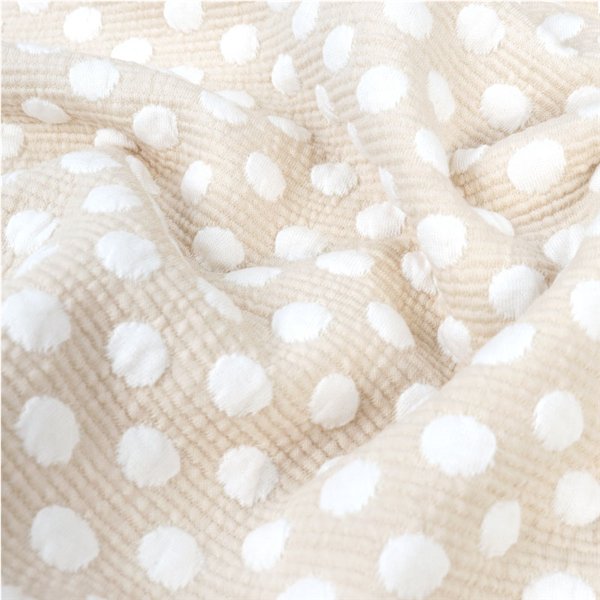 Ett något tjockare och lätt ribbat Modetyg direkt från Italien. Tyget har ett prickigt mönster som buktar lätt ut på tygets rätsida, med en enfärgat vit baksida. Modetyget upplevs otroligt mjukt, följsamt och har lite stretch. Passar utmärkt till sömnad av kavajer, byxor, skjortor, klänningar, tunna jackor med mera!