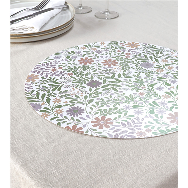 En mönstrad Bordstablett med blommigt motiv i plast. En snygg detalj vid dukningen och som samtidigt skyddar köksbordet och duken från spill. Rengörs enkelt genom att torka av med fuktig trasa!