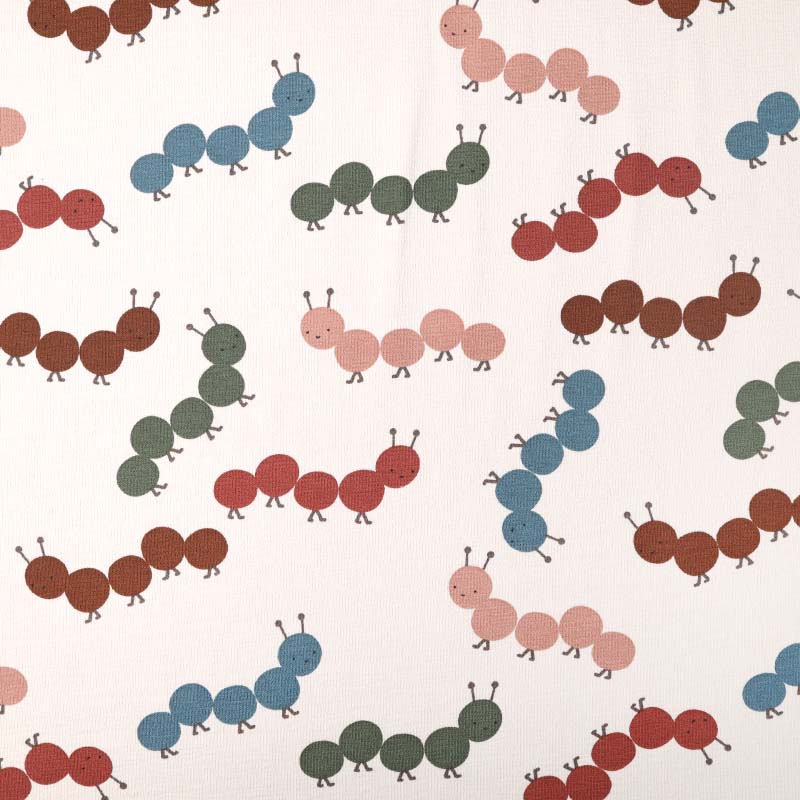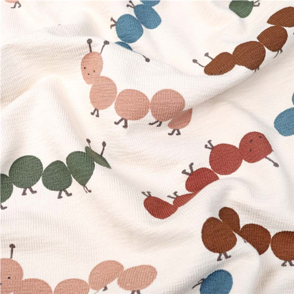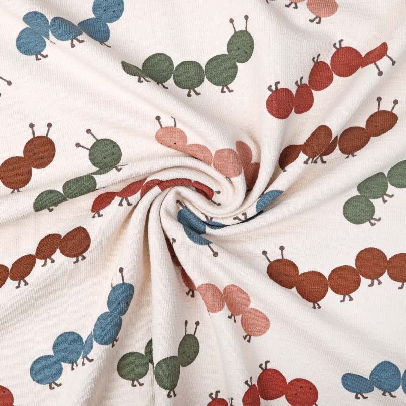 Mjukt och stretchigt Trikåtyg med en kreppad struktur och ett stormönstrat tryck. Trikåtyget har en följsam känsla och generös stretch, vilket gör det både bekvämt att bära och roligt att sy i.
