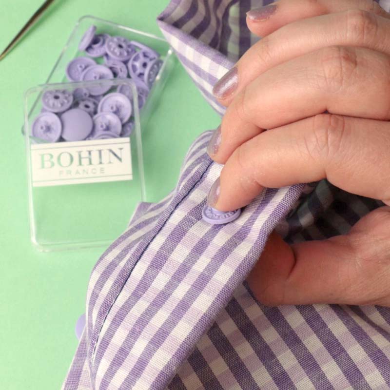 Stilrena och praktiska Tryckknappar som enkelt appliceras med trycket av ett finger – även kallade Finger Snaps. För att fästa dessa knappar behövs inga verktyg, det enda du behöver göra är att göra ett litet hål där du vill att knappen ska sitta och därefter trycka ihop knappens delar.
