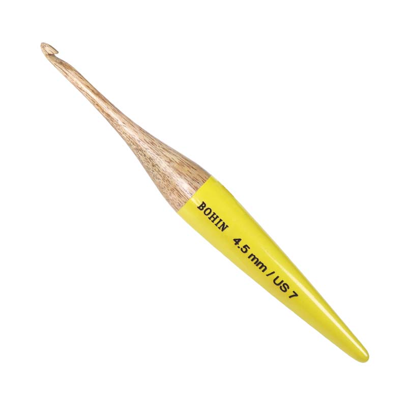 En praktisk Virknål i mangoträ. Virknålen vilar skönt i handen och har ett behagligt grepp som minskar beslastningen vid längre virkningspass.