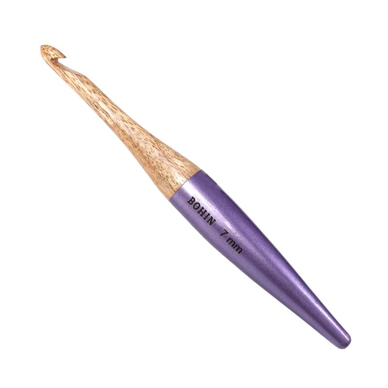 En praktisk Virknål i mangoträ. Virknålen vilar skönt i handen och har ett behagligt grepp som minskar beslastningen vid längre virkningspass.