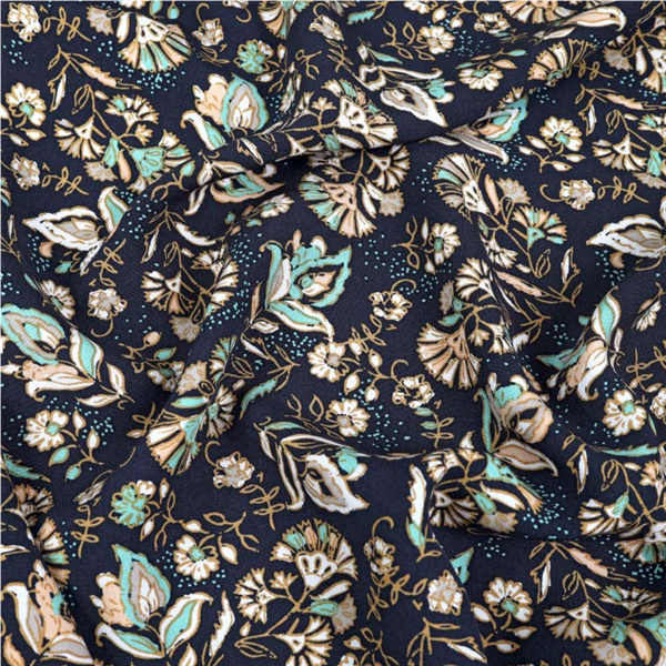 Ett tunt och följsamt Modetyg i 100% viscose. Viscosen upplevs otroligt böljande, tunn och följsam, med ett tryckt mönster. Passar perfekt till sömnad av blusar, klänningar, skjortor, kjolar, byxor med mera.
