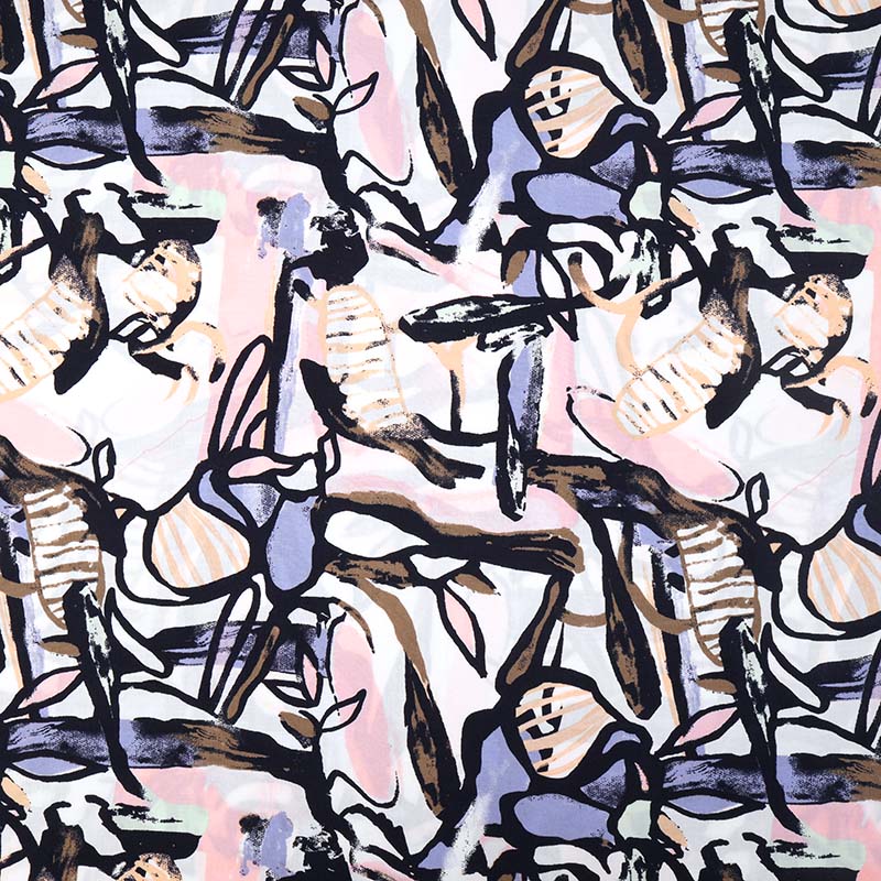 Ett tunt och följsamt Modetyg i 100% viscose. Viscosen upplevs otroligt böljande, tunn och följsam, med ett tryckt mönster. Passar perfekt till sömnad av blusar, klänningar, skjortor, kjolar, byxor med mera.