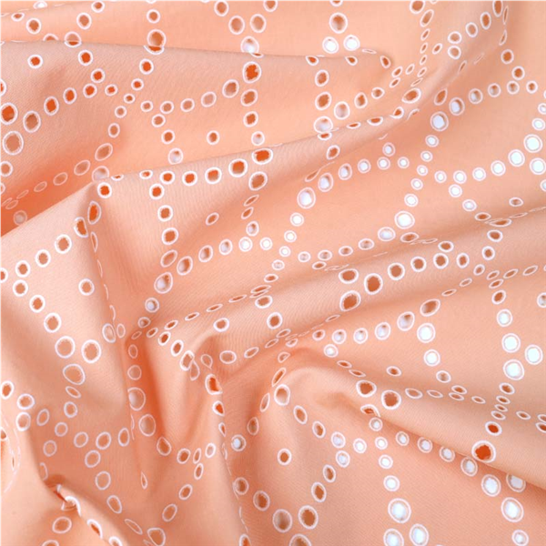 En följsam Viscosemix med vackert hålmönster, som gör det perfekt till att sy blusar, klänningar, skjortor med mera, eller kombinera med flera lager för att framhäva mönstret ytterligare. Tyget upplevs stadigt, tunt och följsamt.