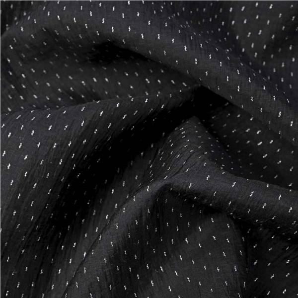 En skir Viscosemix som upplevs både sval och följsam. Viscosen har invävda glittertrådar som ger tyget ett vackert skimmer. Passar utmärkt till att sy klänningar, skjortor, blusar, kjolar, sjalar och mycket mer!