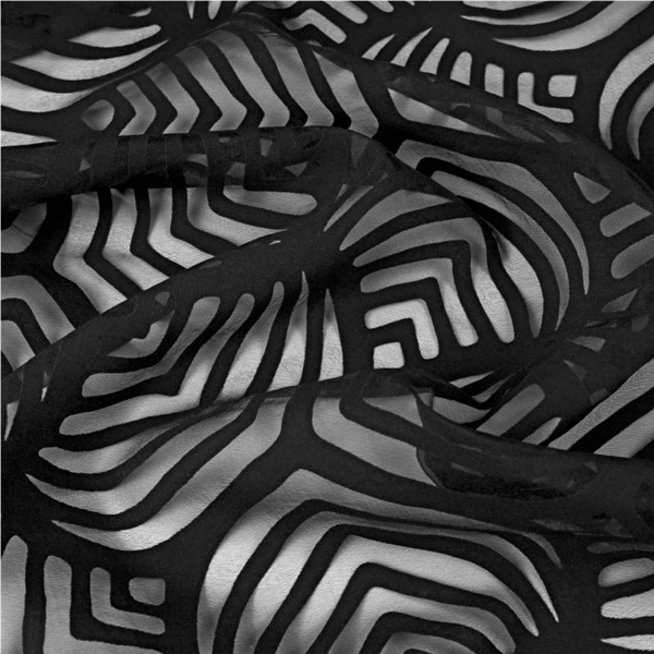 En skir Viscosemix som upplevs både sval och följsam. Viscosen har ett tryckt mönster och transparenta partier i mönstret som ger tyget extra dimension. Passar utmärkt till att sy klänningar, skjortor, blusar eller kombinera som lager med andra tyger för att få mönstret att sticka ut lite extra!